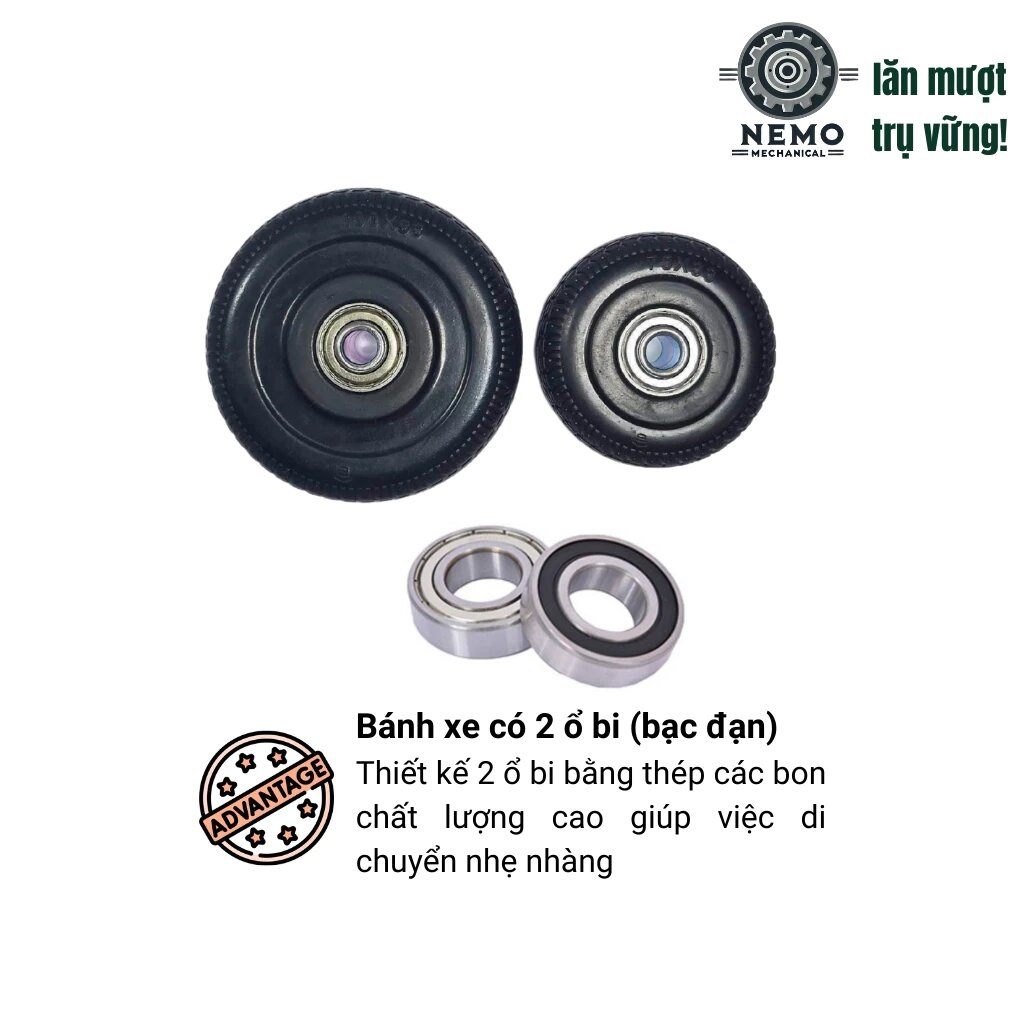 Quay mượt mà: Ổ bi 6202 chất lượng cao, giảm ma sát, giúp bánh xe vận hành nhẹ nhàng và tăng tuổi thọ sử dụng.