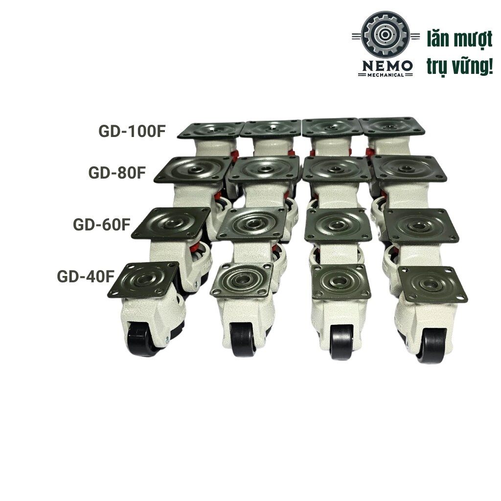 Bánh xe liền chân tăng chỉnh độ cao/thấp cho thiết bị y tế, bàn máy, tủ điện, tải trọng 50-750kg