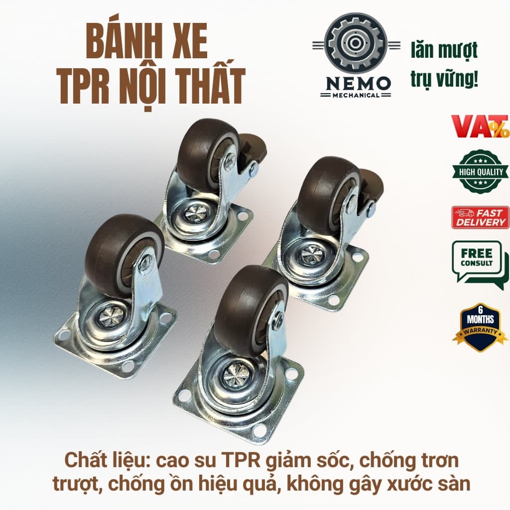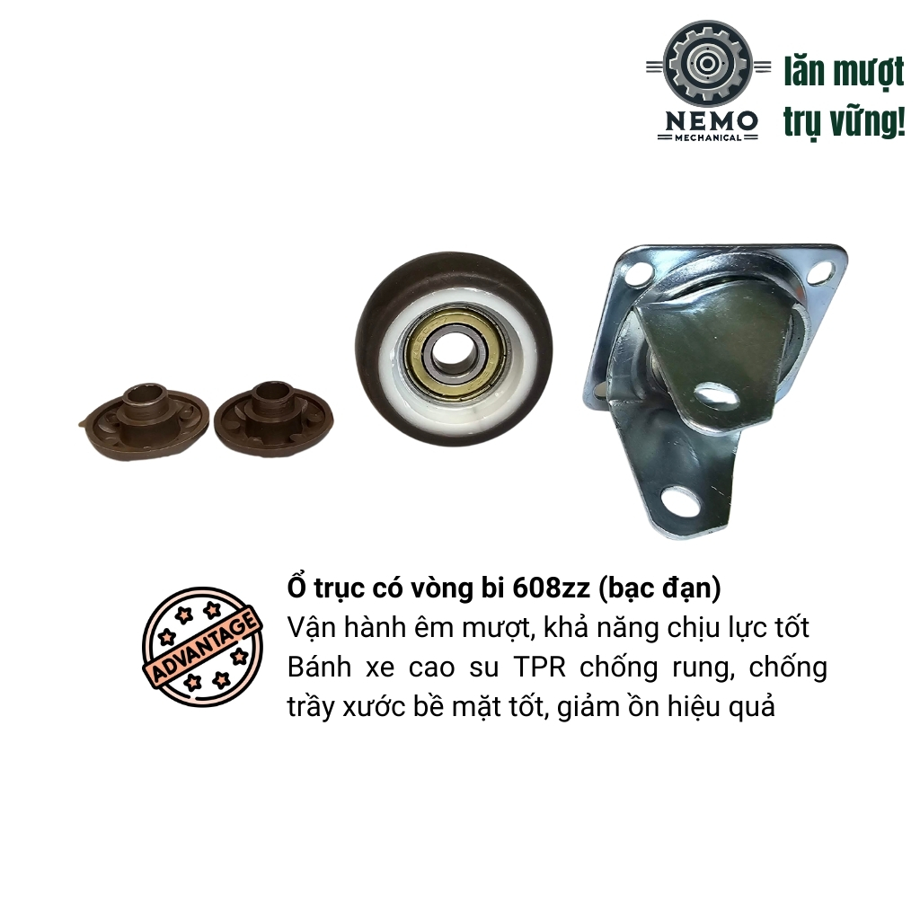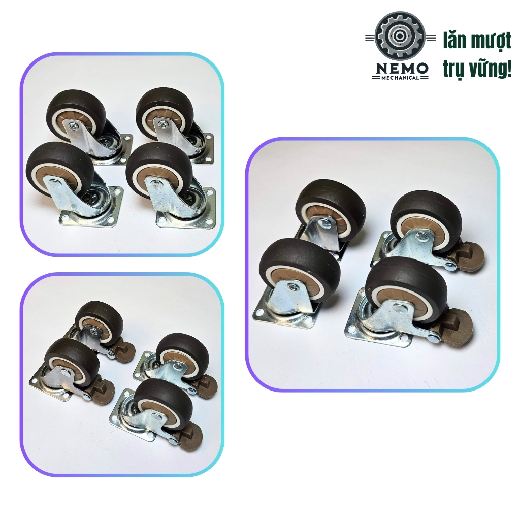 Bánh xe TPR nội thất, có ổ bi, gắn đồ nội thất, xe chòi chân trẻ em tải dưới 100kg