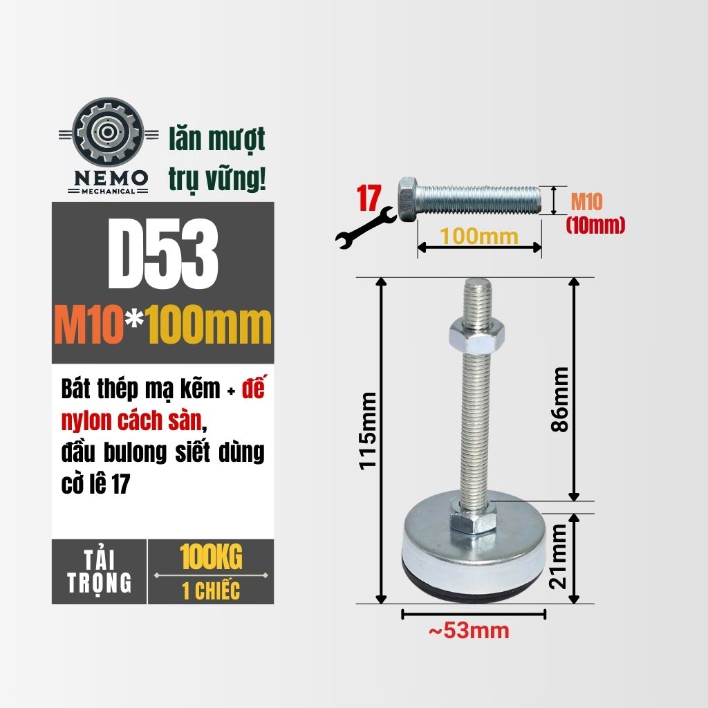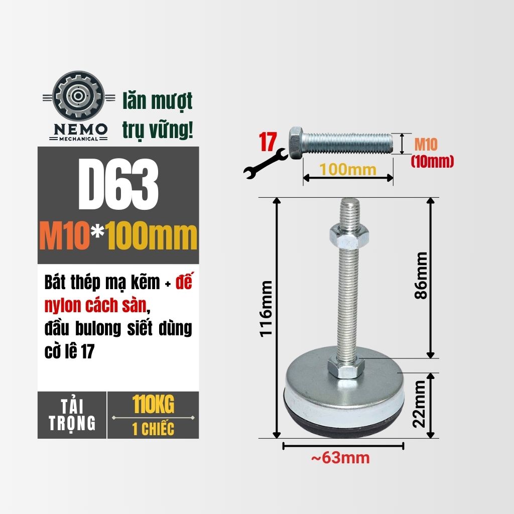 Chân tăng chỉnh chống rung là giải pháp kỹ thuật tối ưu để ổn định thiết bị và triệt tiêu các rung động phát sinh trong quá trình vận hành. Sự kết hợp giữa thép mạ kẽm kiên cố và đệm Nylon dai chắc giúp máy móc đứng vững trên mọi bề mặt, kể cả sàn nhà không bằng phẳng.