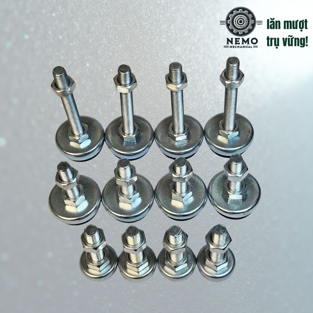 Chân tăng chỉnh đế cao su là giải pháp kỹ thuật hoàn hảo để cố định thiết bị và triệt tiêu rung động. Với độ bám dính vượt trội trên các bề mặt sàn trơn nhẵn như Epoxy hay gạch men, sản phẩm ngăn chặn hiệu quả tình trạng máy bị "trôi" hoặc rung lắc khi vận hành.